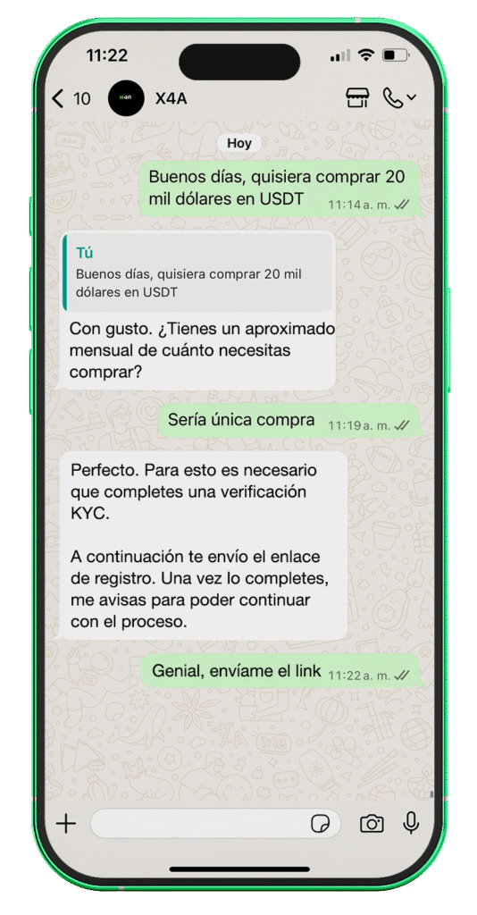 En X4A, cada cliente OTC es atendido por un asesor especializado que te acompaña en todo el proceso. Desde la cotización hasta la confirmación de tu transacción, estás en manos de un profesional que entiende tus necesidades y prioriza tu seguridad. Nada de chats automáticos ni respuestas genéricas: solo atención humana, rápida y confiable.